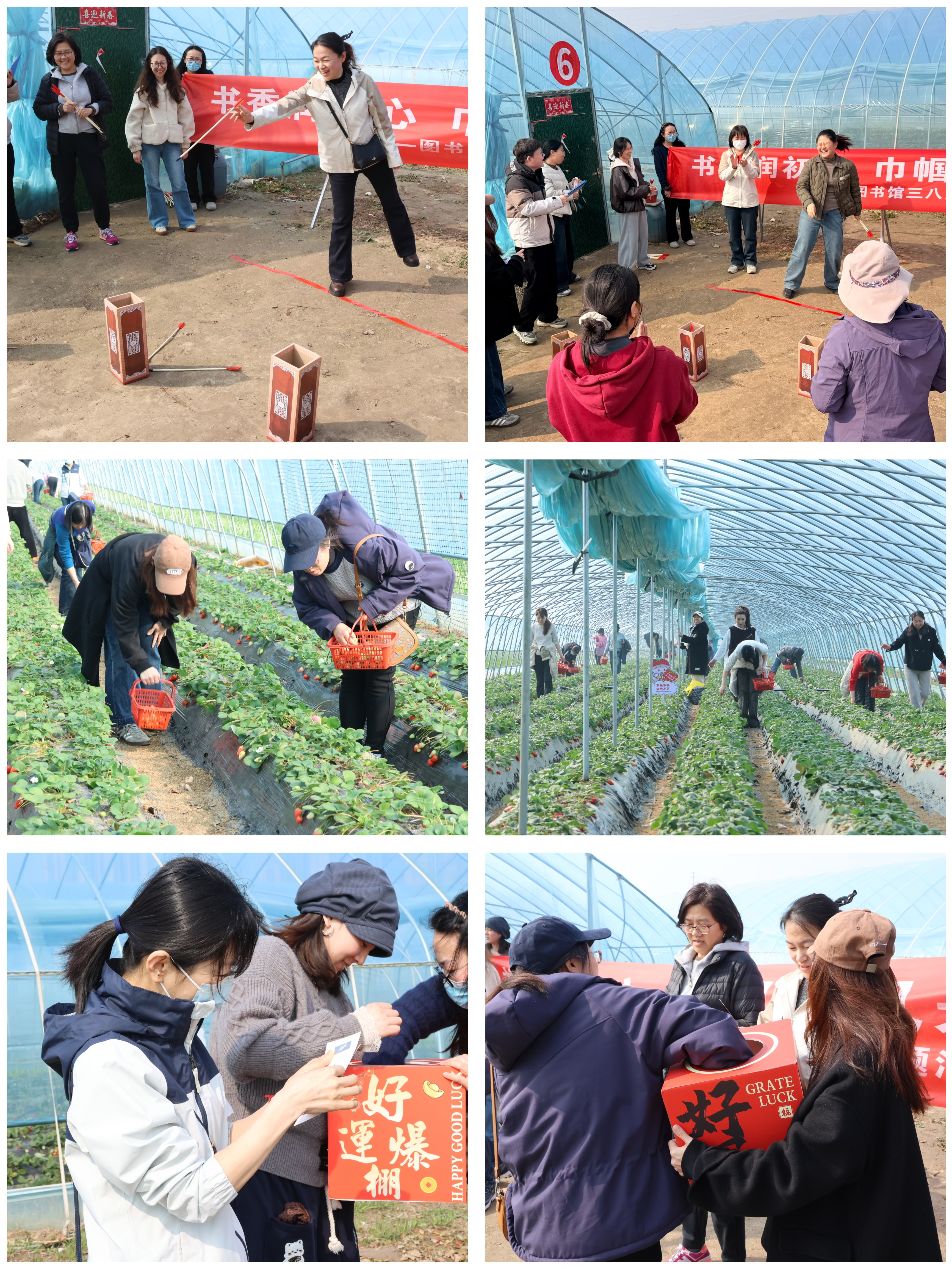活动在轻松愉快的趣味游戏中拉开帷幕,游戏环节共设置“书香接龙”“趣味投壶”“幸运抽奖”三个项目,将文化内涵与趣味运动巧妙融合。游戏环节中,大家屏息凝神,瞄准投掷,每一次命中都引来阵阵喝彩。游戏结束后,大家步入草莓采摘园,开启了自由采摘时光。翠绿的藤蔓间,一颗颗鲜红欲滴的草莓散发着清甜果香。女职工们手提果篮,穿梭其间,一边采摘一边交流,尽情享受春日田园的惬意与放松。